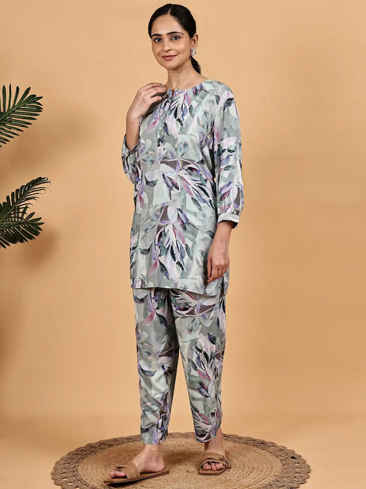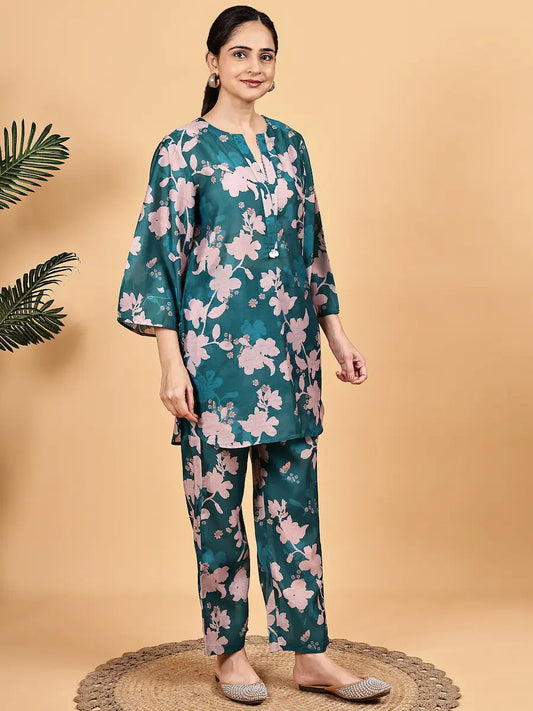Sea Green Floral Co-Ord Set for Women