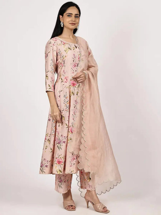 Peach Floral Viscose Kurta Set for Women with Dupatta | Festive & Party Wear