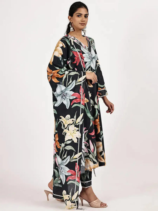 V-Neck Flared Kurta set with Vibrant Floral Print