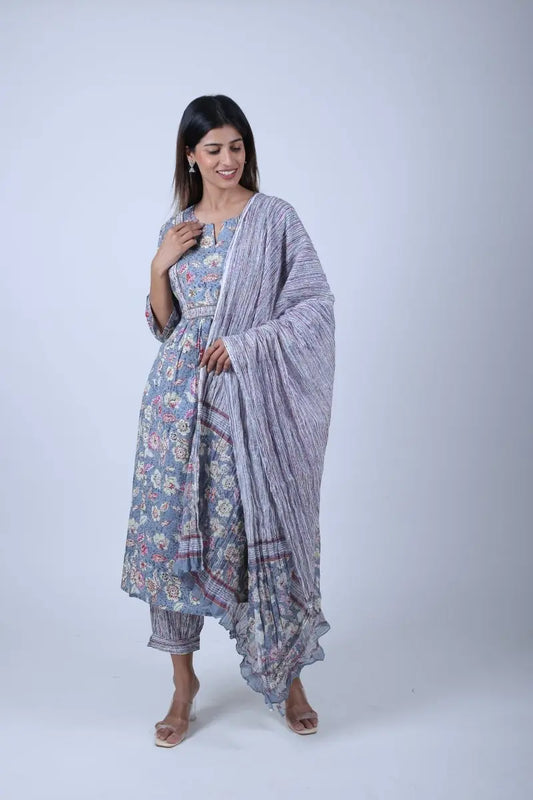 Gray Printed Kurta Set with Pants – Elegant Women's Ethnic Wear