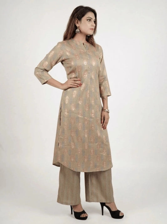 Seafoam and Metallic Foil Print Kurta with Striped Palazzo Set