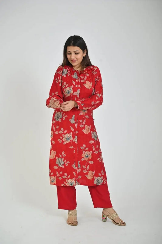 Red Printed Women’s Co-ord Set – Stylish & Comfortable Two-Piece Outfit