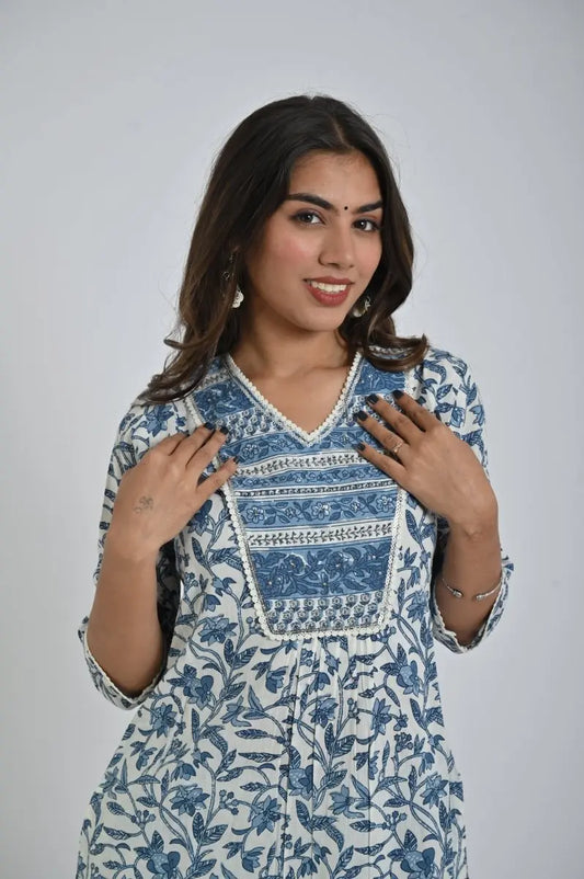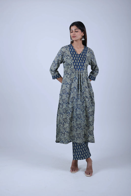 Gray Printed Kurta Set with Pants – Elegant Women's Ethnic Wear