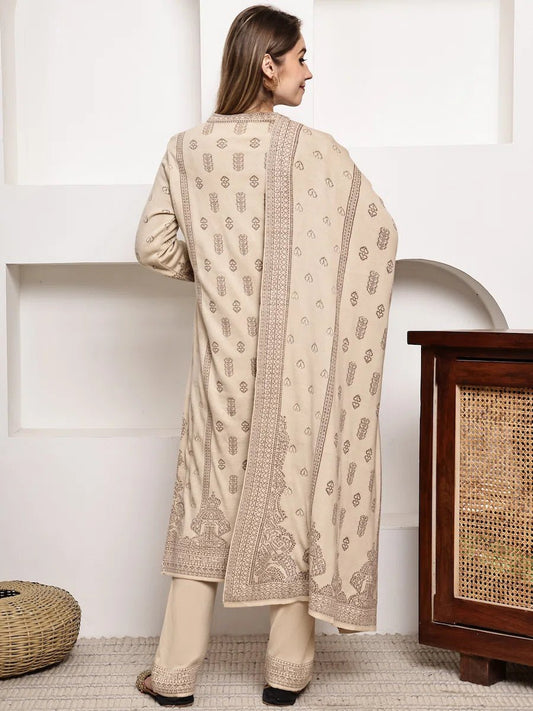 Elegant Beige Acrylic Jacquard Kurta Set with Intricate Detailing