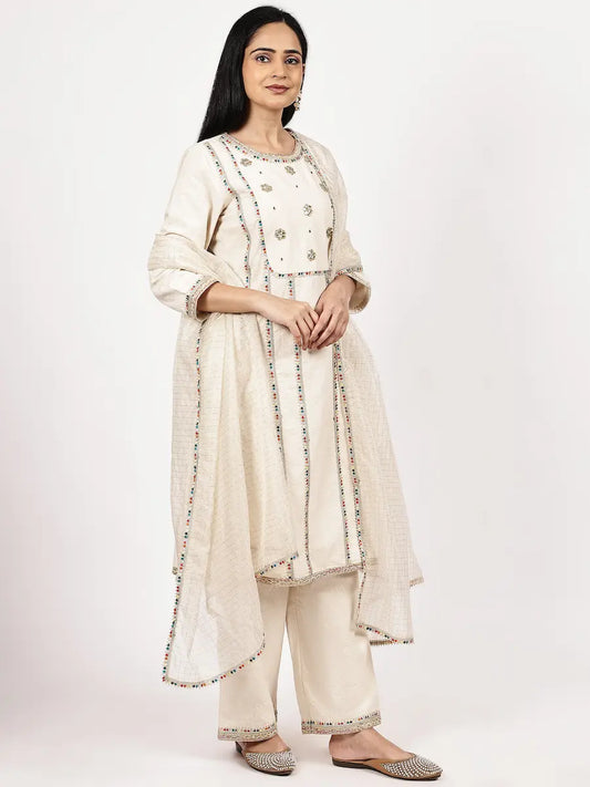 Elegant Cotton Asymmetrical Embroidered Kurta Set with Sheer Dupatta