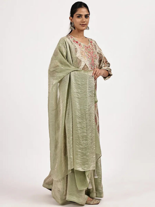 Green Jacquard Kurta Sharara Set with Premium Dupatta