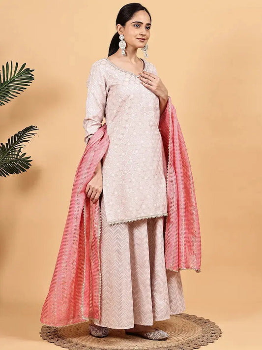 Pastel Pink Silk Jacquard Kurta Set for Women | Elegant Festive & Party Wear Outfit