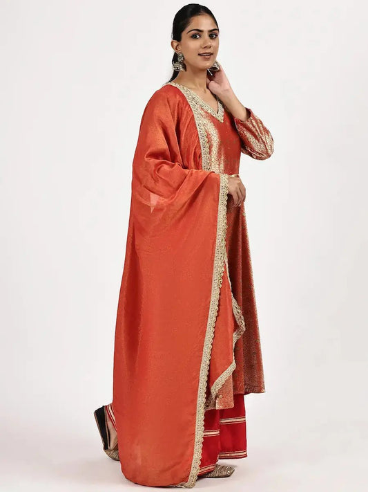 -20% OFFRed Jacquard Kurta Set with Sharara