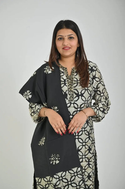 Black & White Printed Kurta Set with Matching Dupatta