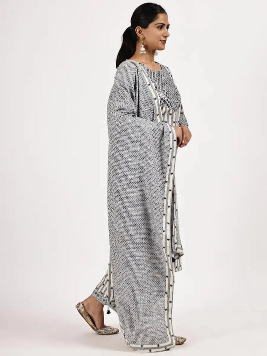 Gray Embroidery Kurta set with Dupatta