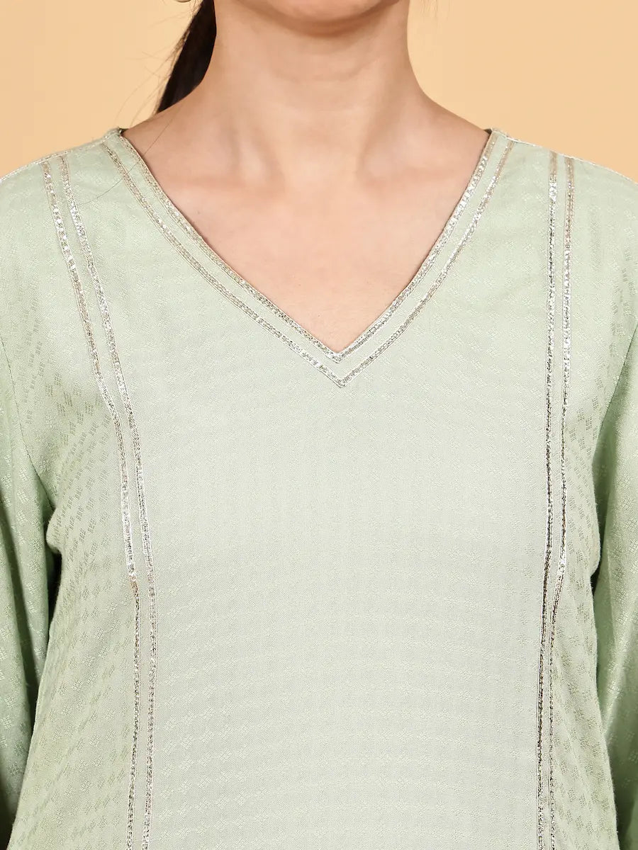 Add a refreshing touch to your ethnic wardrobe with this Pista Green Solid Kurta Set, paired with a floral printed premium dupatta. The kurta features a clean solid design for a sophisticated look, while the vibrant floral dupatta adds a pop of color and charm. Crafted from lightweight, comfortable fabric, this set is perfect for festivals, casual gatherings, and special occasions, offering a balance of style, elegance, and comfort.